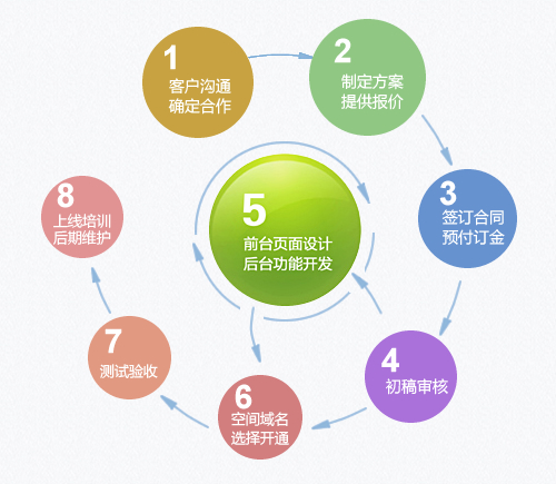 網(wǎng)站建設(shè)流程概述:客戶溝通,確定合作意向→制定建設(shè)方案,提供報(bào)價(jià)→簽訂合同,預(yù)付定金→初稿審核→前臺頁面設(shè)計(jì),后臺程序開發(fā)→空間及域名選擇、開通→測試驗(yàn)收→上線培訓(xùn),后期維護(hù)