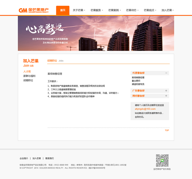 金芒果基于對(duì)中國(guó)房地產(chǎn)的執(zhí)著追求,憑借對(duì)市場(chǎng)營(yíng)銷的激情創(chuàng)新,以完全經(jīng)過(guò)市場(chǎng)檢驗(yàn)的專家團(tuán)隊(duì)和對(duì)市場(chǎng)的敏銳天賦,大膽構(gòu)思、執(zhí)著實(shí)踐、激情專注、科學(xué)分析,贏得了業(yè)主的廣泛認(rèn)同和支持,并以優(yōu)異業(yè)績(jī)和服務(wù)質(zhì)量,被客戶譽(yù)為具實(shí)效、富激情、科學(xué)嚴(yán)謹(jǐn)?shù)膶I(yè)房地產(chǎn)服務(wù)商。