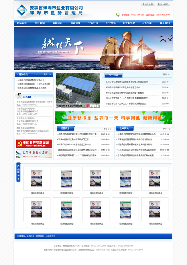 多年來,蚌埠鹽業(yè)認真貫徹落實國家《食鹽專營辦法》、《食鹽加碘消除碘缺乏危害管理條例》,始終以食鹽市場安全穩(wěn)定為天職,忠實履職,恪盡職守。一方面對全市鹽業(yè)市場進行鹽政監(jiān)管,嚴厲打擊鹽業(yè)違法犯罪,全力維護食鹽市場安全穩(wěn)定;另一方面負責(zé)組織開展食鹽專營,致力為消費者提供安全、優(yōu)質(zhì)、放心的加碘食鹽,確保全市371萬人口的食鹽供應(yīng)。與此同時,蚌埠鹽業(yè)主動適應(yīng)市場需要,積極拓展非鹽經(jīng)營,在發(fā)展的道路上不斷深化改革,自主創(chuàng)新,產(chǎn)業(yè)結(jié)構(gòu)轉(zhuǎn)型邁出堅實步伐,全區(qū)總資產(chǎn)已近8000萬元,現(xiàn)有經(jīng)營倉儲面積約1.5萬平米,在建倉庫1萬余平米。2014年實現(xiàn)銷售收入14762.69萬元,其中食鹽銷售4967.40萬元,非鹽銷售9795.20萬元、實現(xiàn)利稅1124.52萬元,經(jīng)濟社會效益居全省同行領(lǐng)先。先后榮獲全省鹽業(yè)系統(tǒng)先進單位五連冠、安徽省勞動保障誠信示范企業(yè)、安徽省衛(wèi)生先進單位、檔案管理考核安徽省一級單位、蚌埠市A級納稅信用單位、蚌埠市第十四屆文明單位等多項榮譽稱號。